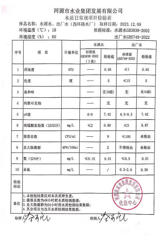2023年12月9日水質(zhì)檢驗(yàn)報(bào)告 ???